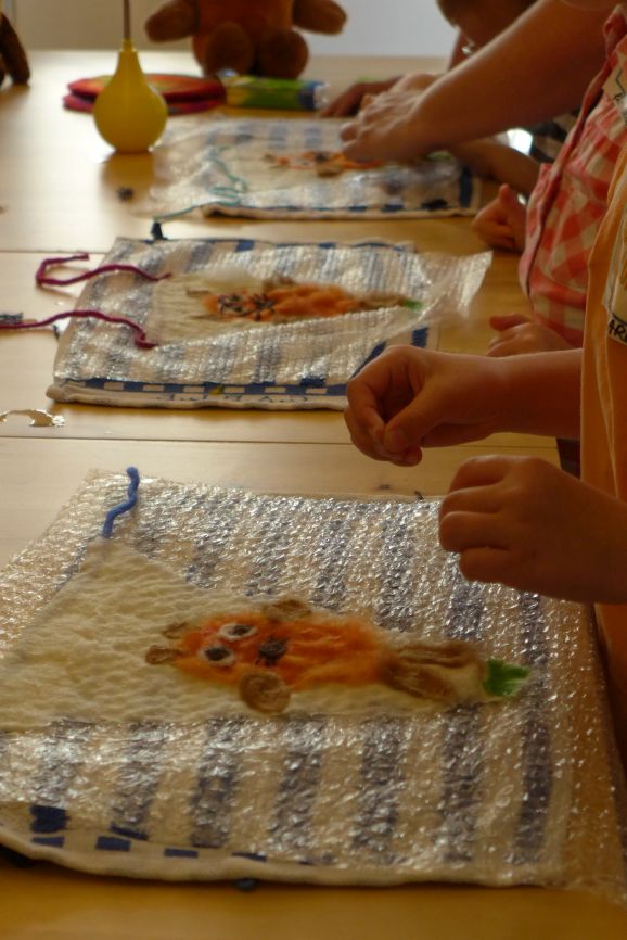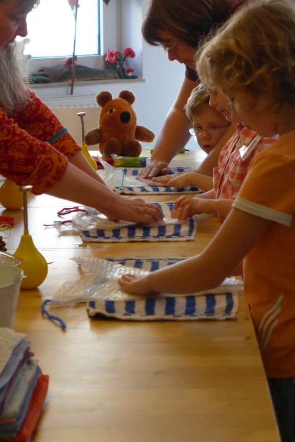 So entstanden Maus-Wimpel, Maus-Frisbies und Filzkometen.